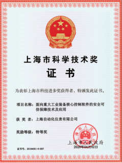 2019年度上海市科學(xué)技術(shù)獎揭曉——公司“面向重大工業(yè)裝備核心控制軟件的安全可信保障技術(shù)及應(yīng)用"項目獲特等獎